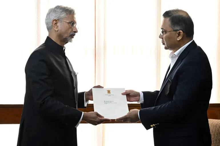 New Delhi, India – Dressed in black for the occasion, India’s Foreign Minister S Jaishankar met Tarique Rahman, son of the deceased former Bangladeshi Prime Minister Khaleda Zia, with sombre expressions on their faces.