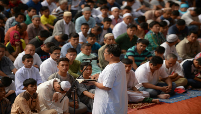 An imam delivers a sermon during an Eid-ul-Fitr prayer on the grounds of the city hall in Iligan City on the southern island of Mindanao. Photo: REUTERS